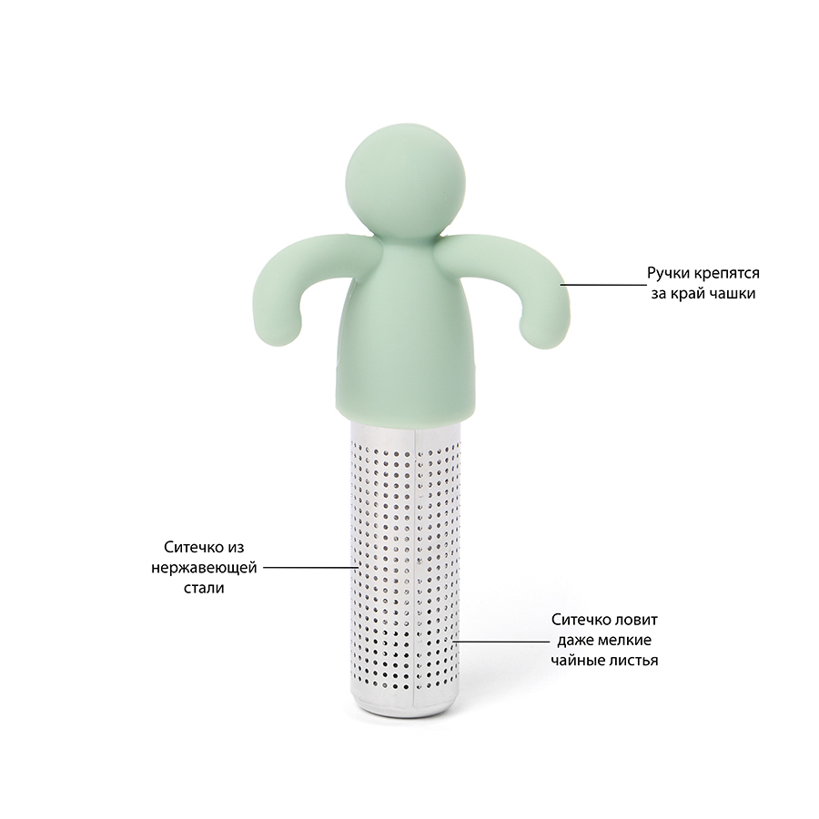Заваривайте любимый чай сразу в кружке с помощью заварочника «Бадди». Такой забавный человечек развеселит Вас за завтраком и напоит ароматным чаем в считанные минуты его заварив. Благодаря мелкому сетчатому основанию чаинки не высыпятся, но чай получится насыщенным в считанные секунды. Зафиксировать заварник можно благодаря «ручкам» человечка, они легко гнутся в зависимости от формы кружки и прочно закрепляются на ее стенке. Идея и разработка ёмкости принадлежит известным дизайнерам Alan Wisniewski и Gil Cohen.