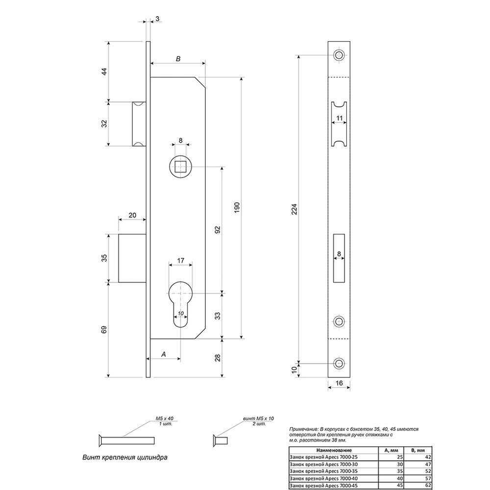 Тип крепления врезного замка - лицевая планка;