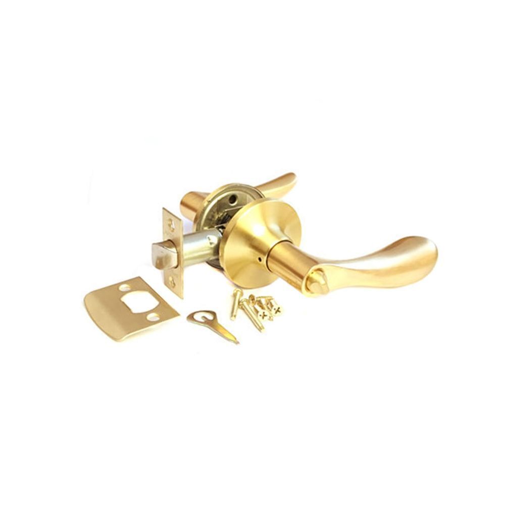 При повороте рычага происходит блокировка не самой защелки, а только ручки, это позволяет открыть замок ключом, не прибегая к демонтажу кнобы.