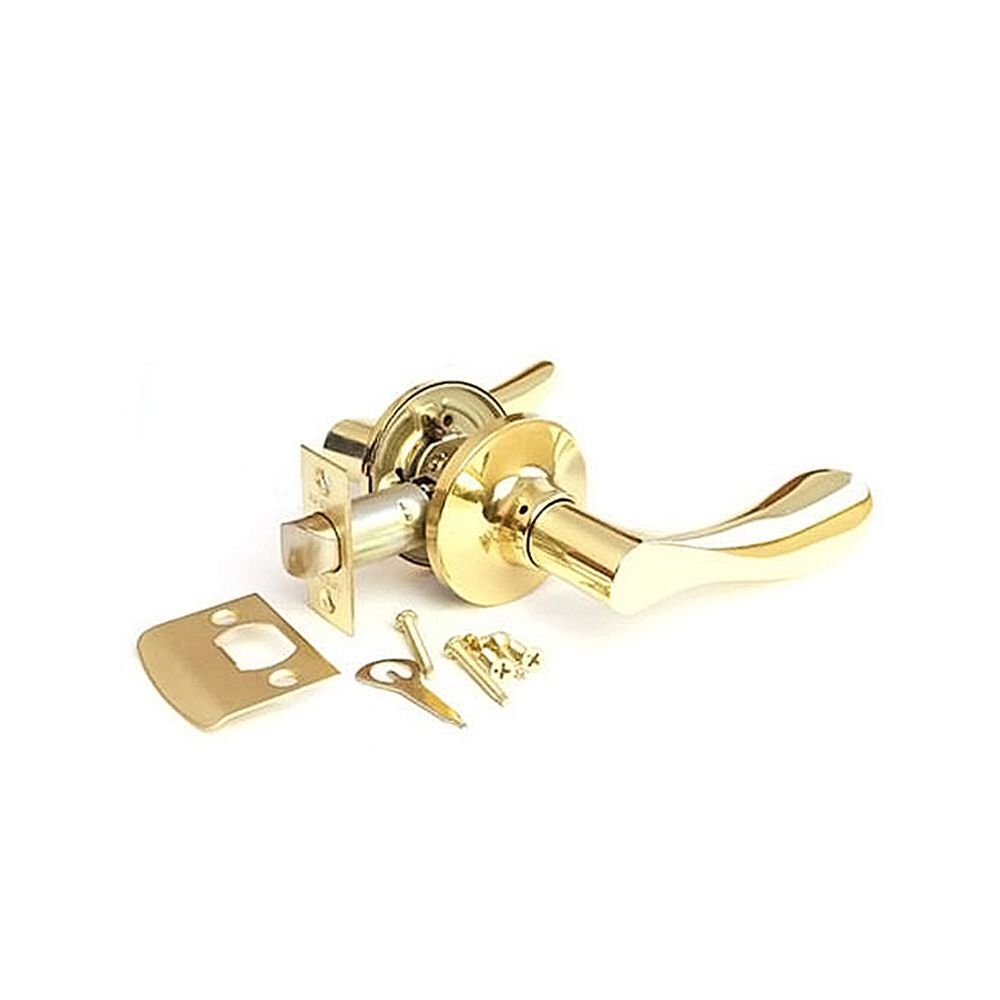 При повороте рычага происходит блокировка не самой защелки, а только ручки, это позволяет открыть замок ключом, не прибегая к демонтажу кнобы.