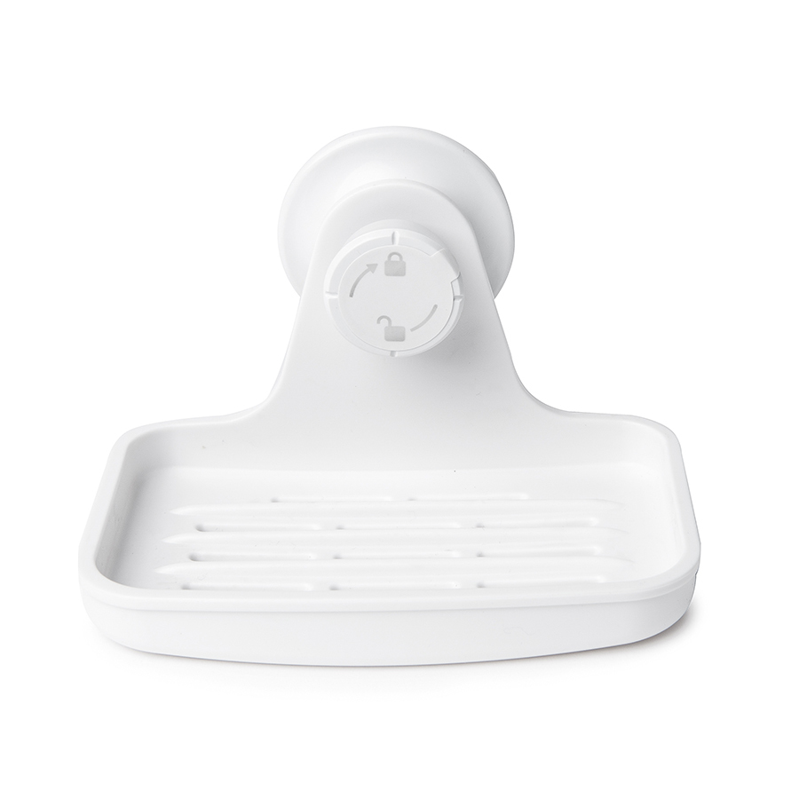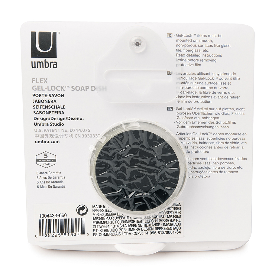 Дополнительное место для хранения в душе не бывает лишим. Мобильную мыльницу Flex можно повесить на том уровне, куда легко дотянуться, не прибегая к акробатическим кульбитам и не рискуя травмами разной степени тяжести. Крепится к стене на специально разработанную присоску с запатентованной технологией Gel-Lock™. Крепление прочно удерживается на плитке, стекле и других гладких поверхностях. Вам не нужно будет сверлить стены, а если надобность в мыльнице пропадёт, вы сможете перевесить её на кухню. Дизайнер Umbra Studio
