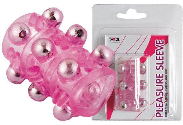 Розовая силиконовая насадка c шариками Pleasure Sleeve