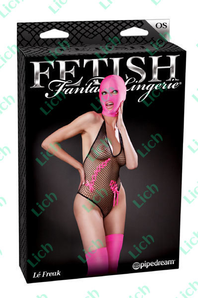 В комплект входит сплошной розовый шлем-капюшон с прорезью для рта, розовые чулки из спандекса и черное боди-сетка с розовыми вставками-лентами. Чашечки: A-C Обхват груди - 81 - 96 см Обхват талии - 61 - 81 см Обхват бедер - 86 - 101 см Ваш вес - 40.8 - 72.5 кг.