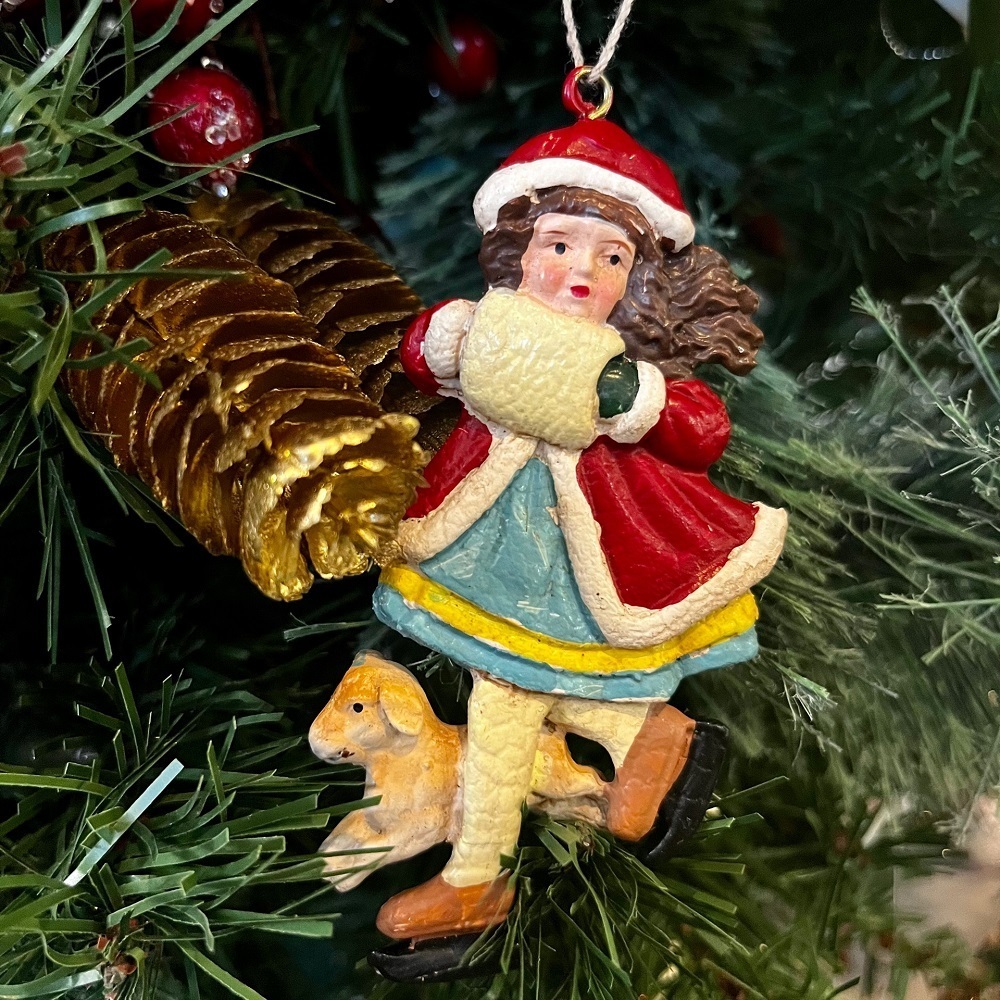 Выполненная под старину фигурка маленькой девочки ассоциируется у нас с традиционными зимними развлечениями, горой подарков под сверкающей разноцветными огнями ёлкой, с тёплым семейным праздником в кругу родных и близких и, конечно же, прекрасным настроением.
