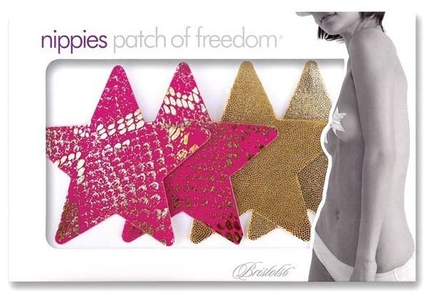 Комплект из 1 пары золотистых пэстис-звездочек и 1 пары розовых пэстис-звездочек со змеиным принтом