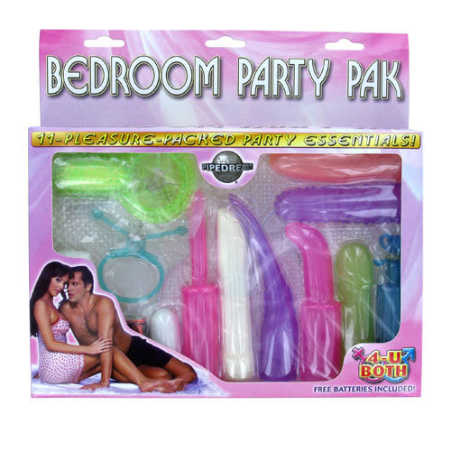 Набор эротических игрушек для взрослых из нескольких предметов: кольцо на пенис с большим виброяичком, утяжка с железным фиксатором, вибро-яичко из пластика, тонкий вибратор с 7 насадками разных цветов и форм для анальной, вагинальной или клиторальной стимуляции. В комплекте выносной пульт вибрации, работающий от двух батареек типа АА. К нему подключается вибро-кольцо или вибро-яичко. Небольшой пластиковый вибратор работает от 1 батарейки типа АА.