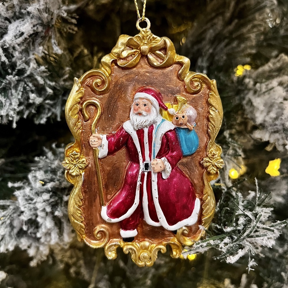 Украшение представляет собой фигурку Деда Мороза, расположенную в центре плоского медальона. Изящная окантовка добавляет изделию благородства. Новогодние украшения всегда несут в себе волшебство и красоту праздника.