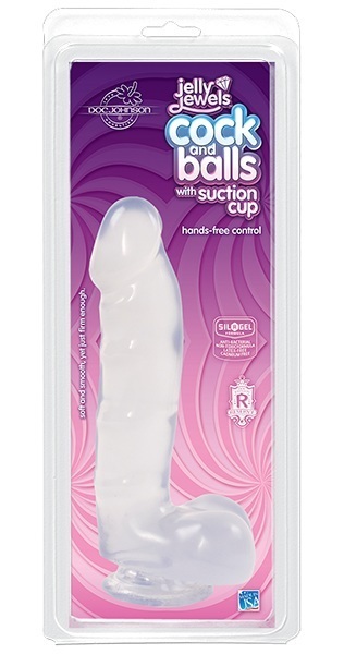 Прозрачный фаллоимитатор с мошонкой и присоской JELLY JEWELS