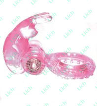 Розовое эрекционное кольцо с вибратором и клиторальным стимулятором-зайчиком