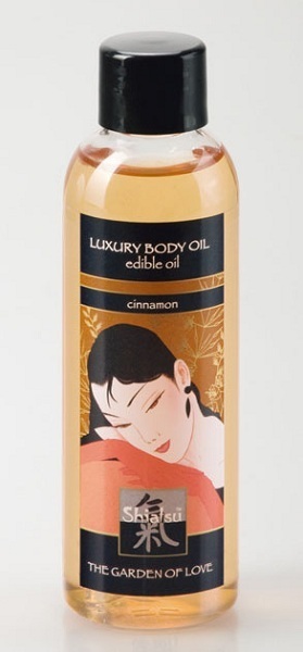Это массажное масло с возбуждающим запахом корицы приятно ощущать как на теле, так и на языке. Съедобное и безопасное для здоровья, оно позволит чередовать чувственные прикосновения рук с другими ласками. Массажные движения кончиками пальцев, поцелуи, касания горячего язычка… чем не удовольствие для двоих?