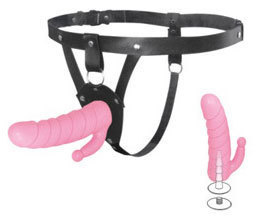 Женский страпон с фаллоимитатором и стимулятором ануса