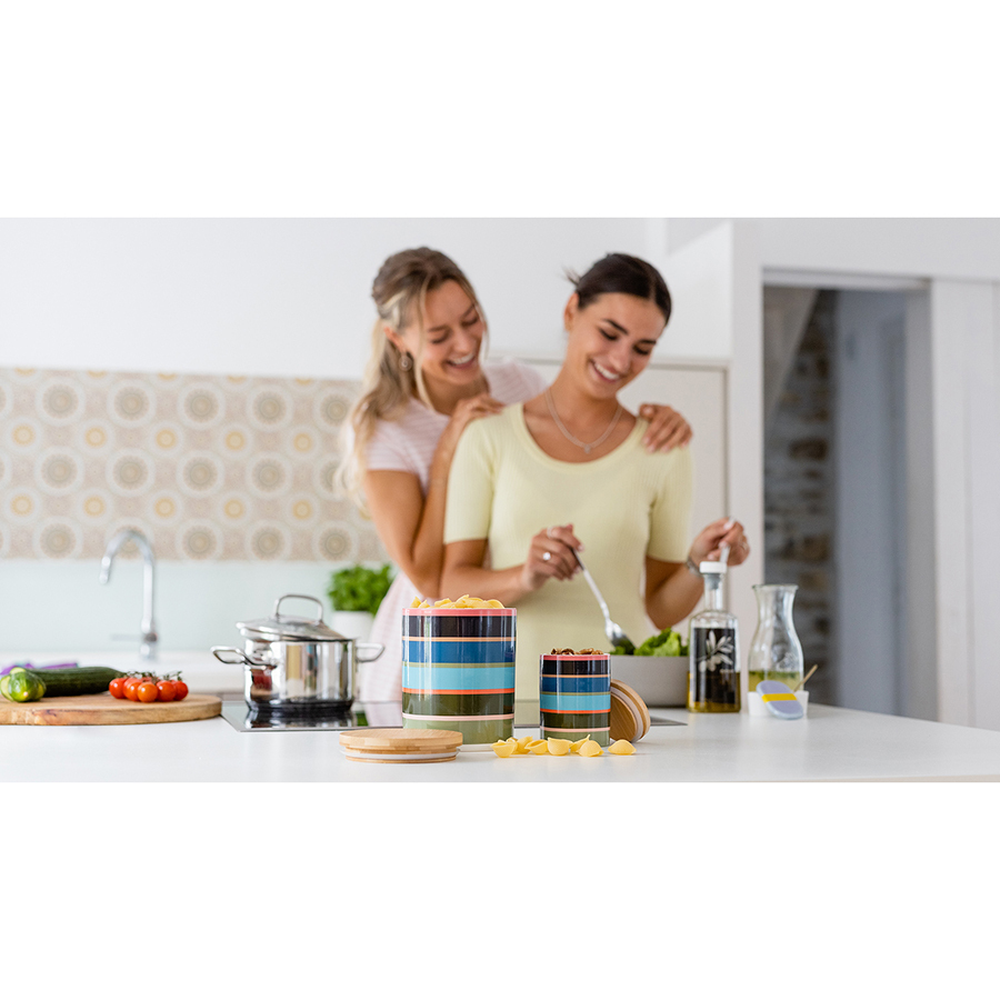 Компактная банка в ярком, привлекательном дизайне прекрасно подойдет для хранения таких продуктов, как чай, сахар, специи и т.д.