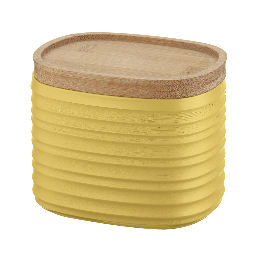 Банка для хранения из переработанного пластика с экологичной бамбуковой крышкой поможет навести порядок на кухне и украсит пространство.