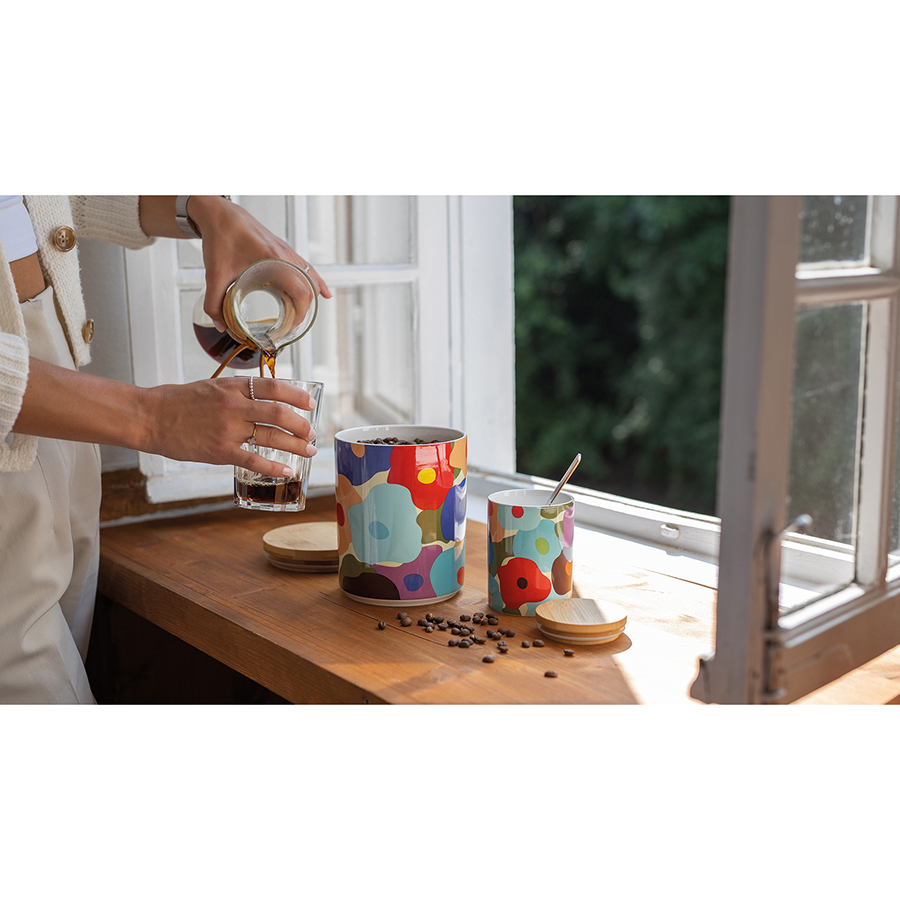 Компактная банка в ярком, привлекательном дизайне прекрасно подойдет для хранения таких продуктов, как чай, сахар, специи и т.д.