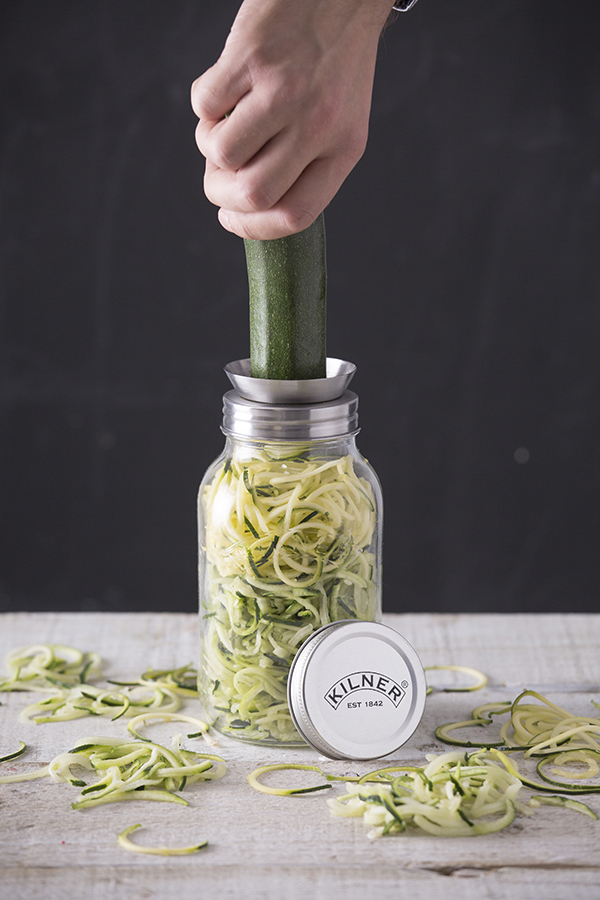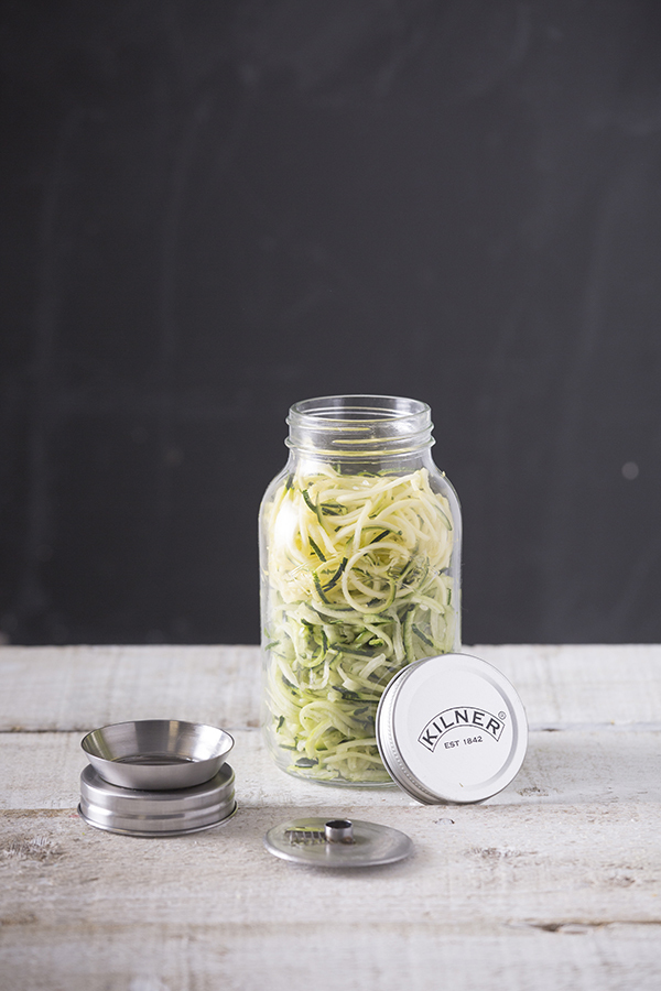 Уникальная банка создана дизайнерами Kilner специально для тех, кто следит за ЗОЖ-трендами. С помощью крышки с острым лезвием можно с лёгкостью приготовить спагетти из любого твёрдого овоща, для этого идеально подойдут морковь, цуккини, тыква, картофель, свекла и др. Измельчённые овощи можно приготовить на пару, поджарить или замариновать со специями. Просто закройте банку крышкой и поставьте в холодильник. Любители ланча в банке делают сразу несколько порций, которых хватает на неделю, и ставят в холодильник, откуда каждое утро перед работой берут с собой по банке с полезным перекусом. Банка упакована в красивую коробку и станет оригинальным подарком всем, кто следит за своим здоровьем. Особенности: - объём 1 л - рекомендуется промыть перед первым использованием - в ёмкость не рекомендуется наливать кипяток - можно мыть в посудомоечной машине - банка украшена логотипом бренда Kilner - при мытье не использовать абразивные губки