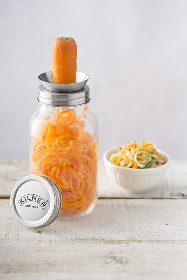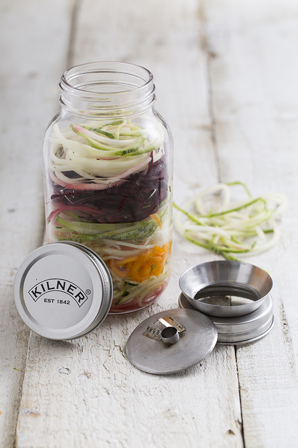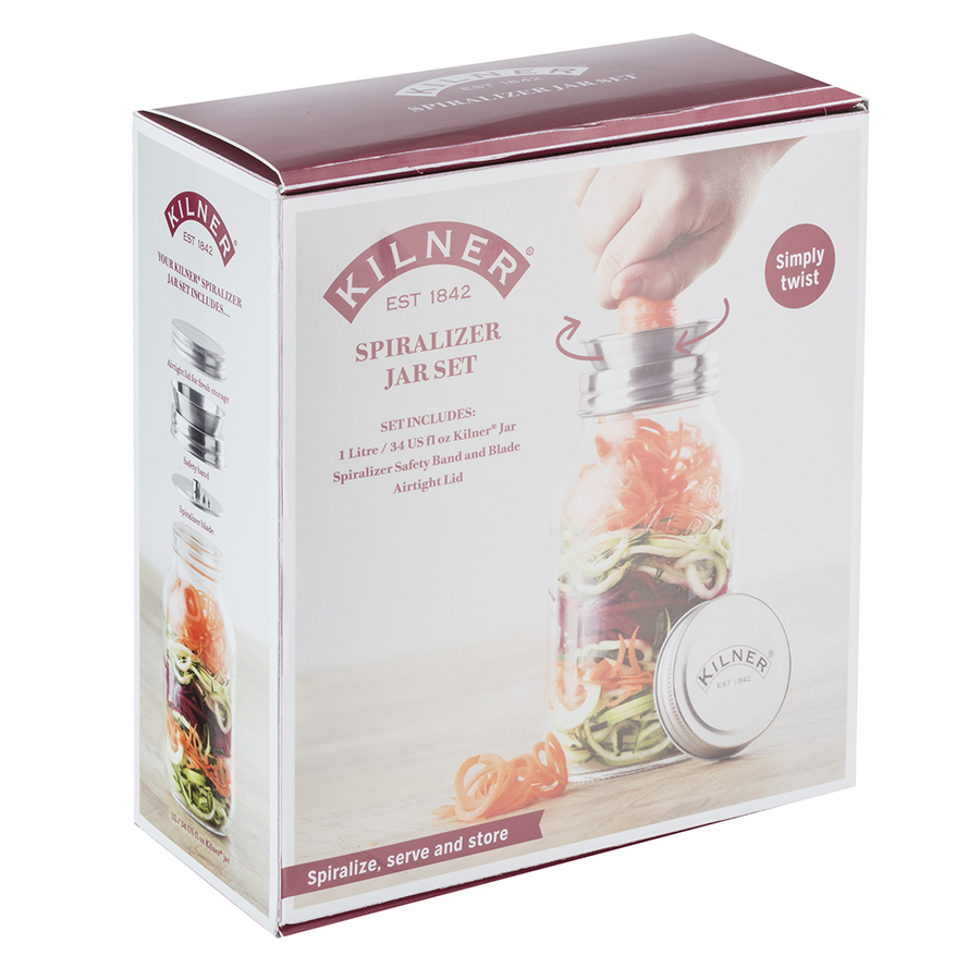 Уникальная банка создана дизайнерами Kilner специально для тех, кто следит за ЗОЖ-трендами. С помощью крышки с острым лезвием можно с лёгкостью приготовить спагетти из любого твёрдого овоща, для этого идеально подойдут морковь, цуккини, тыква, картофель, свекла и др. Измельчённые овощи можно приготовить на пару, поджарить или замариновать со специями. Просто закройте банку крышкой и поставьте в холодильник. Любители ланча в банке делают сразу несколько порций, которых хватает на неделю, и ставят в холодильник, откуда каждое утро перед работой берут с собой по банке с полезным перекусом. Банка упакована в красивую коробку и станет оригинальным подарком всем, кто следит за своим здоровьем.