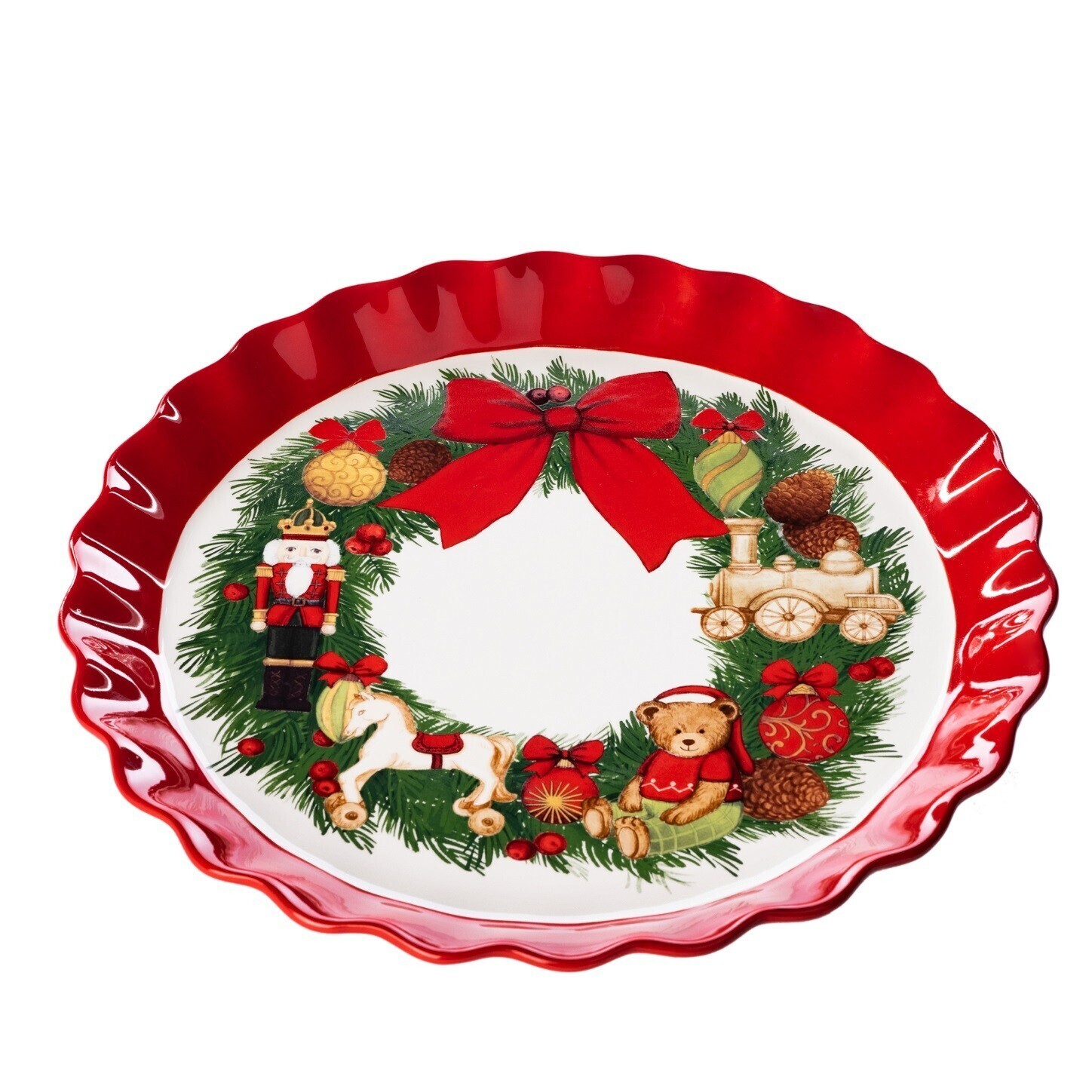 Сервировочное блюдо изготовлено из качественной керамики и украшено красивым новогодним рисунком. Подойдёт для подачи фруктов, десертов, закусок и многого другого.