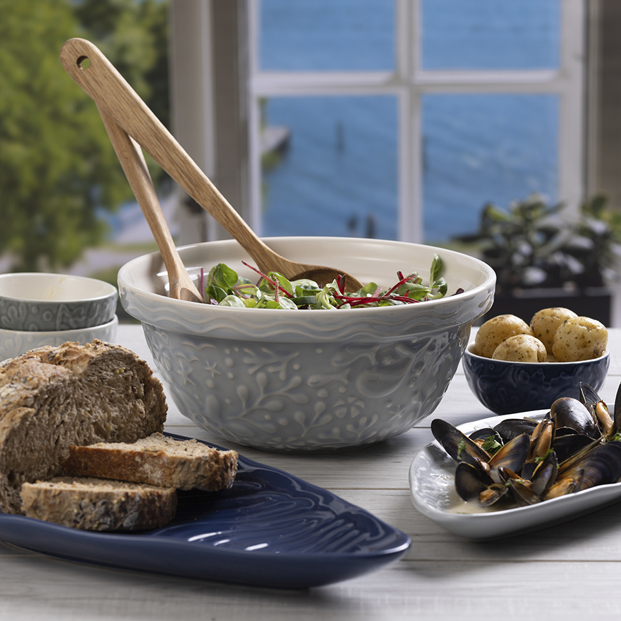Коллекция посуды Nautical в серо-синих тонах поможет сделать акцент на интересной сервировке и привнесет в интерьер кухни ощущение морской свежести.