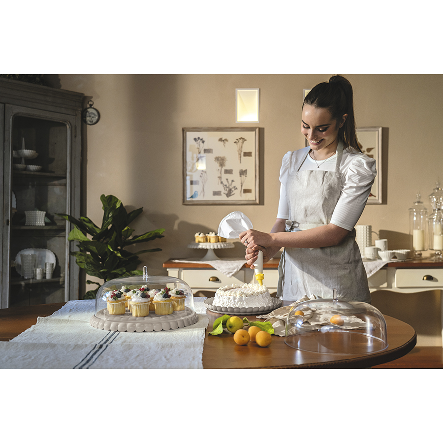 Блюдо сервировочное Tiffany станет украшением повседневного, праздничного стола или уютного чаепития на свежем воздухе. Его можно переворачивать и использовать с двух сторон. Сторона с загнутыми краями идеально подойдет для подачи мягкой выпечки и пирожных, а плоская идеальна для целых тортов и пирогов. Крышка в форме купола защитит продукты от заветривания, пыли и насекомых, что особенно важно во время трапез в саду или на открытой веранде. Рельефная форма в сочетании с прозрачным материалом заставляют поверхность посуды сверкать и переливаться на свету, делая ее центром притяжения взглядов.