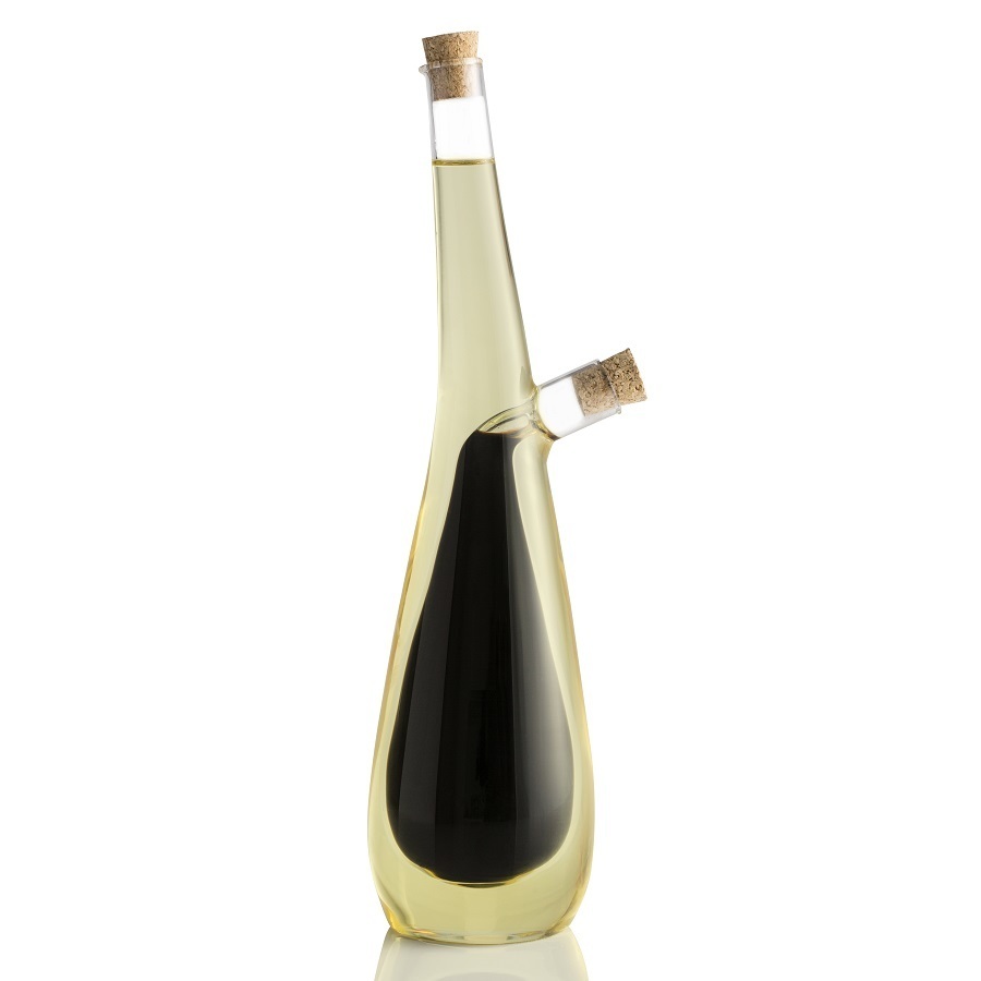 С бутылкой для двух видов масел Tear Drop у вас под рукой всегда будут два ингредиента для приготовления разных блюд. Шейкер изготовлен из прочного, прозрачного стекла, представлен в виде емкостей, одна из которых находится внутри другой. Удобные лейки герметично закрываются корковыми крышечками. Размеры: высота – 27 см, ширина – 7 см, объем – 300 мл.