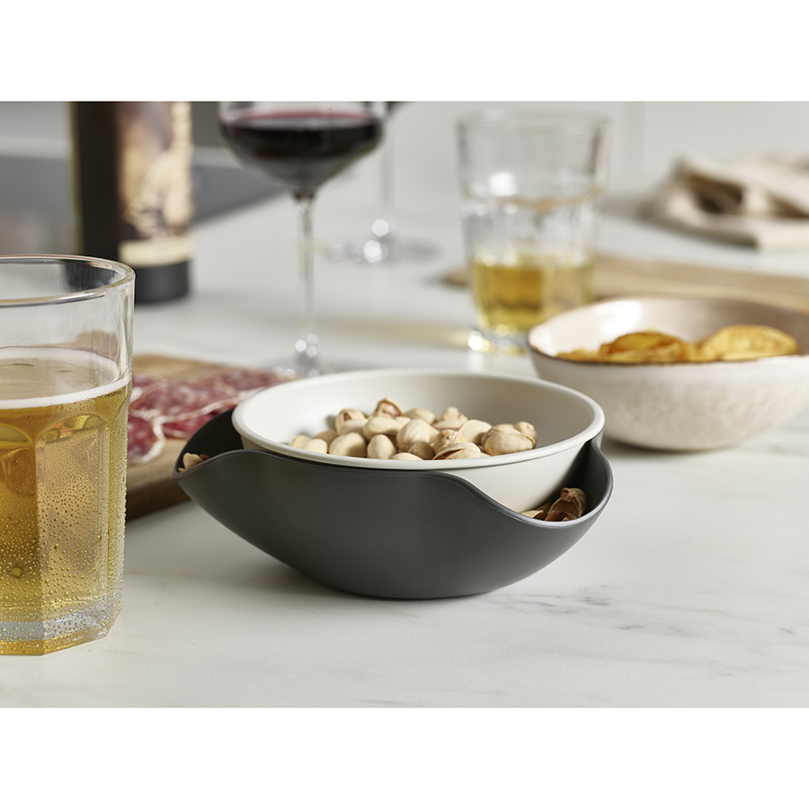 Миска состоит из двух чаш, сложенных друг в друга, причем нижняя из них изогнута наружу в трех местах, создавая желоба, в которые можно складывать пищевые отходы. Материал не содержит Бисфенол-А.