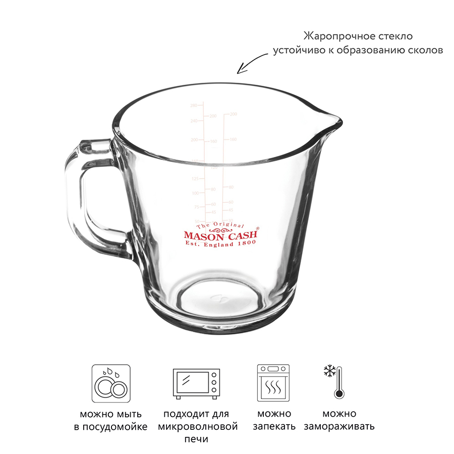 Изделие дополнено яркой мерной шкалой в унциях и миллилитрах. Для производства посуды мастера используют жаропрочное стекло, устойчивое к образованию сколов и воздействию высоких температур. Удобная ручка и изогнутый носик позволяют легко выливать жидкости.