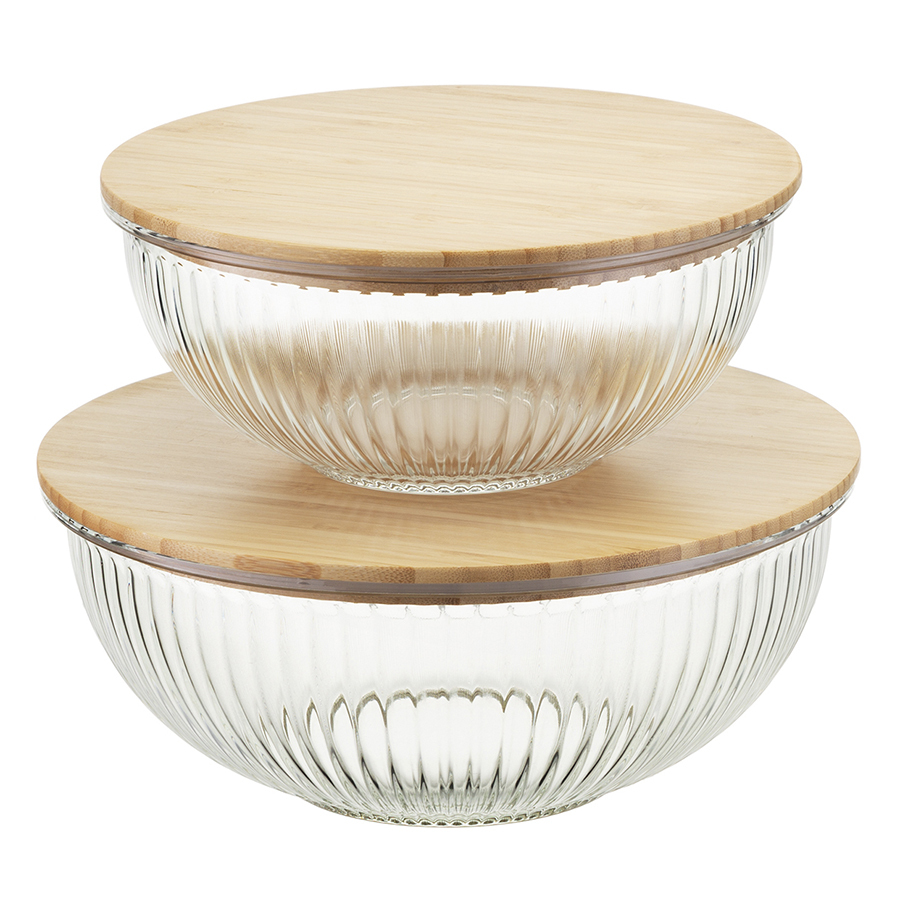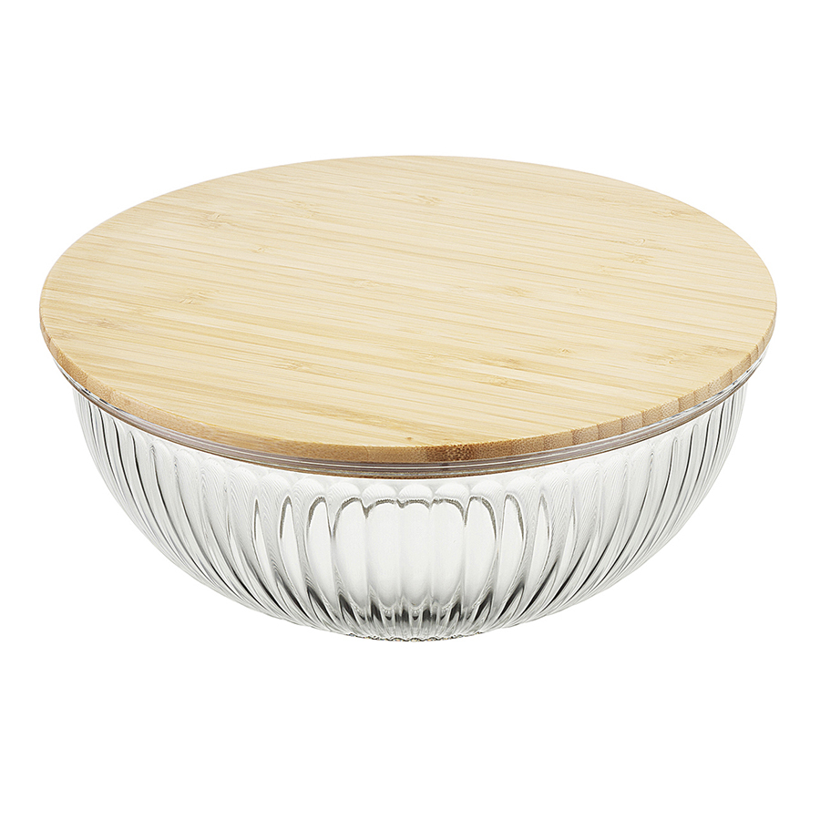 Сочетание стекла и бамбука делает посуду стильной, удобной в использовании, практичной и долговечной. Боросиликатное стекло отличается повышенной прочностью и прозрачностью, устойчиво к перепадам температуры и механическим воздействиям. Это позволяет смело нагревать и замораживать емкость, не боясь ее повредить. Крышка из бамбука обеспечивает плотное закрывание благодаря специальному ободку из силикона. Рельефный узор придает дизайну особый шарм и элегантность.