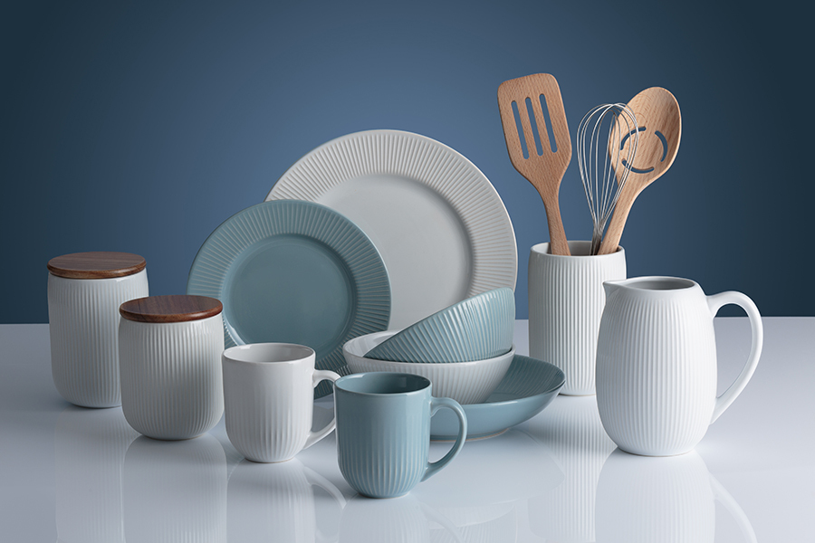 Посуда с утонченным тиснением выполнена из каменной керамики, отличающейся прочностью и стойкостью к образованию сколов.