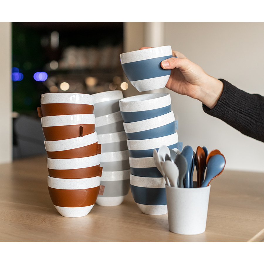 Изделие долго держит температуру горячих напитков, при этом не нагреваясь. Резиновый ободок не дает чашке скользить в руках. Изделие не бьется и не деформируется. Материал не содержит бисфенола-А и меламина.
