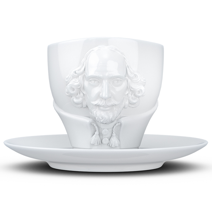 Чайная пара бренда Tassen из коллекции Talent станет центральной частью сервировки и превосходным подарком. Чашка украшена объемным изображением поэта Уильяма Шекспира.