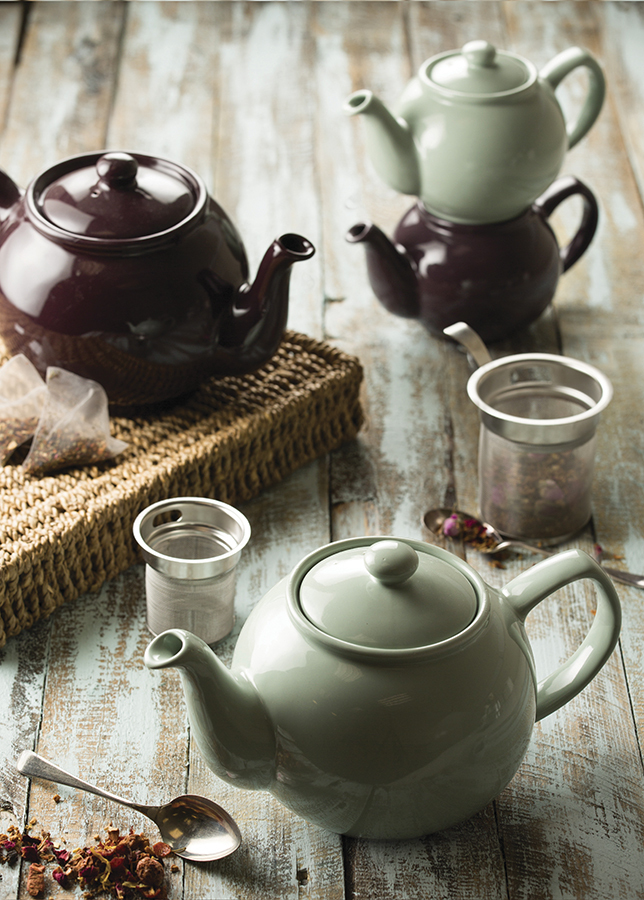 Чайник рассчитан на 6 чашек чая. Он изготовлен из прочной каменной керамики, покрыт глянцевой эмалью.