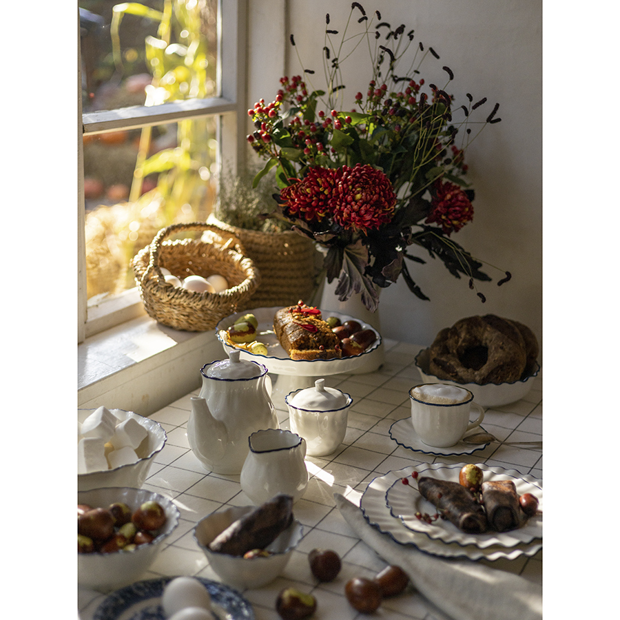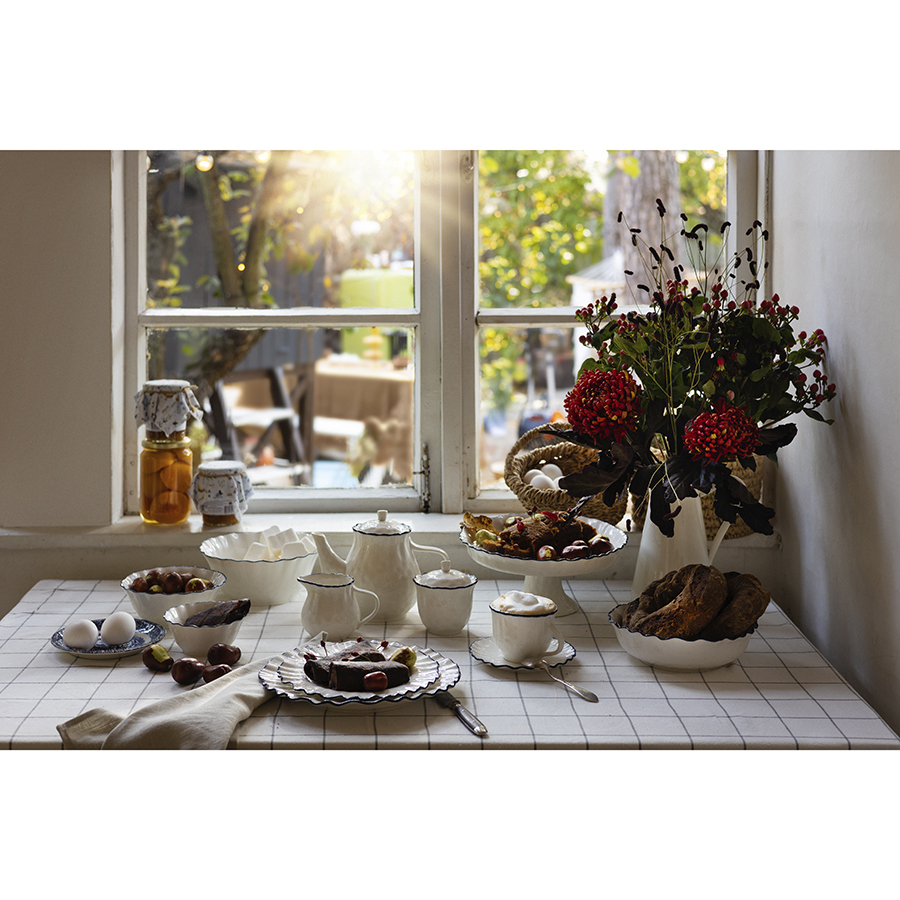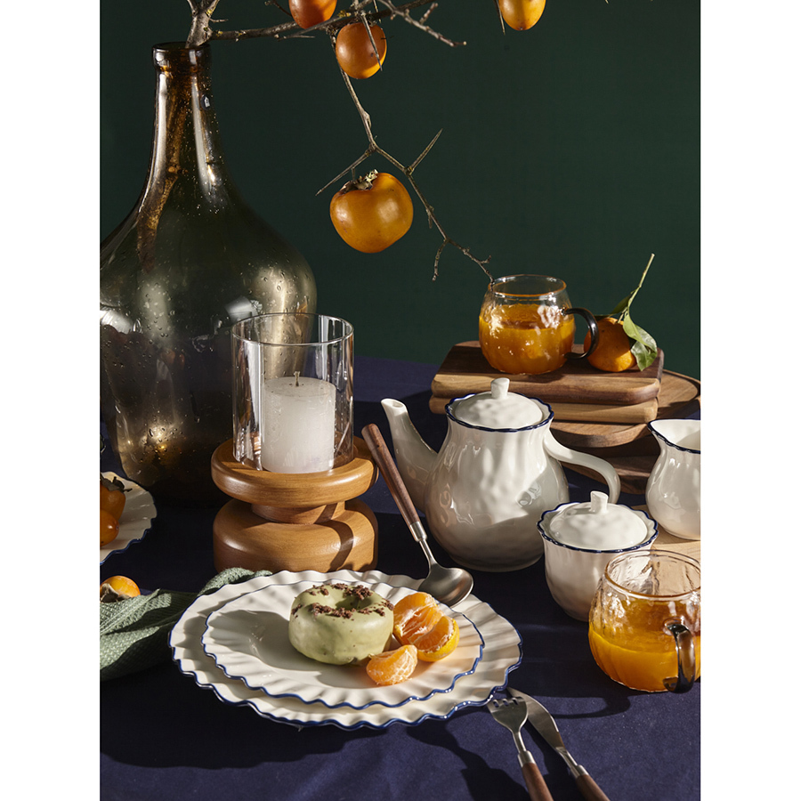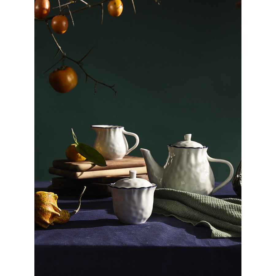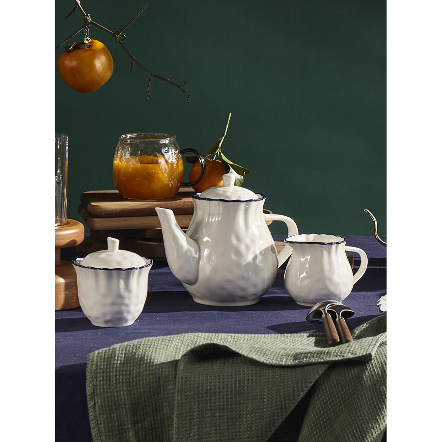 Чайник заварочный из коллекции Santorini от бренда Liberty Jones воплощает в себе элегантность посуды из фарфора, привлекая необычным дизайном с контрастными акцентами.