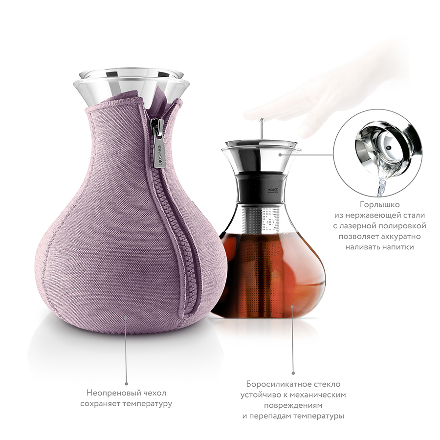 Чайник заварочный Tea maker позволит приготовить ароматный листовой чай. Благородный вкус напитка играет яркими красками благодаря особой технологии заваривания. Герметичная откидная крышка позволяет надолго сохранять чай горячим, за счет специальной формы носика ни капли жидкости не прольется мимо чашки. Съемный чехол стирается исключительно вручную, чайник можно мыть в посудомоечной машине. Материалы: силикон, нержавеющая сталь, боросиликатное стекло; чехол – неопрен. Объем: 1 л.