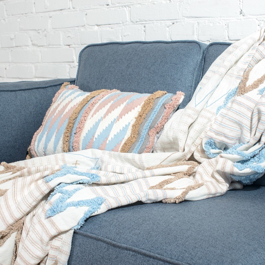 Чехол на подушку из коллекции Ethnic добавит акцент в любой интерьер: как в яркий фьюжн, так и в строгий лофт. Модель украшена контрастным орнаментом и объемными вставками в виде пышной бахромы и тонких кос. Чехол выполнен из мягкого, приятного на ощупь хлопка. Сбоку – потайная застежка на молнии. Плотность ткани - 325GSM. Размер: 30х60 см ! Стирка запрещена ! Гладить запрещено ! Барабанная сушка запрещена ! Не отбеливать ! Сухая чистка запрещена Декоративные чехлы, подушки и пледы с объемным декором (вышивкой, помпонами, кисточками, бахромой) нельзя стирать и сушить в машинке. Засохшие пятна можно удалять мягкими щетками путем соскабливания загрязнения в направлении к центру пятна, а влажные — бумажными салфетками или тканью с использованием мыла или мягкого моющего средства. Гладить такие изделия также запрещается. Перед использованием изделия обязательно ознакомьтесь с правилами ухода на этикетке. Обратите внимание, что многие товары из коллекции Ethnic выполнены вручную, поэтому они могут незначительно отличаться друг от друга размером, цветом или рисунком.