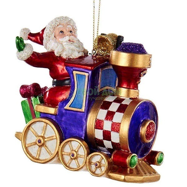 Предусмотрительный Дед Мороз везёт на своём красочном поезде подарк. Станет роскошным украшением новогоднего интерьера.