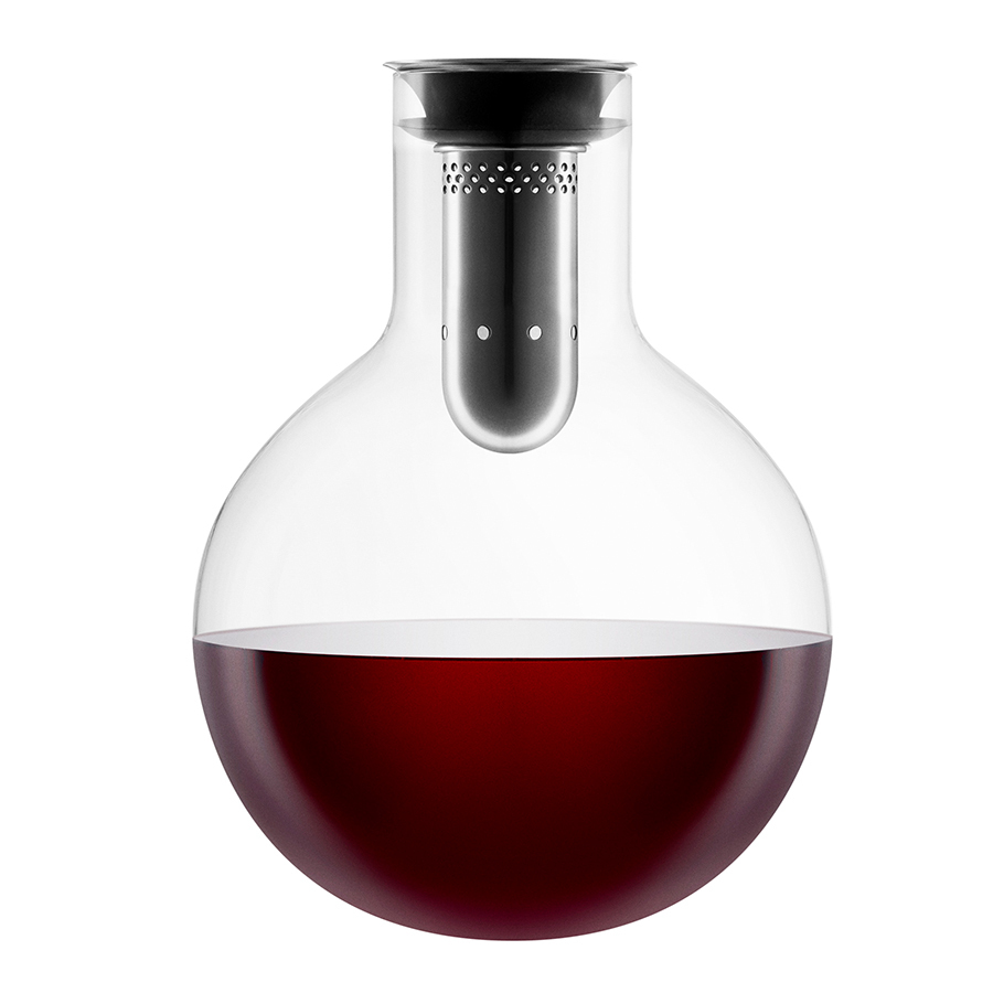 При наливании вино проходит через внутреннюю воронку со множеством дырочек, а затем стекает по стенкам, что позволяет ему максимально обогатиться кислородом. Этот процесс одновременно раскрывает вкус вина и делает его подачу ислючительно эффектной. Помимо этого, когда вы будете наливать вино в бокал, ни капли не прольется мимо – специальная форма горлышка не позволяет каплям падать с него, направляя их обратно в графин. Новая версия дополнена удобной подставкой. Подержите ее в морозильнике перед подачей вина: напиток будет мягко охлаждаться на протяжении целых 4 часов. Графин изготовлен из стекла ручной работы. Вмещает 0,75 л.