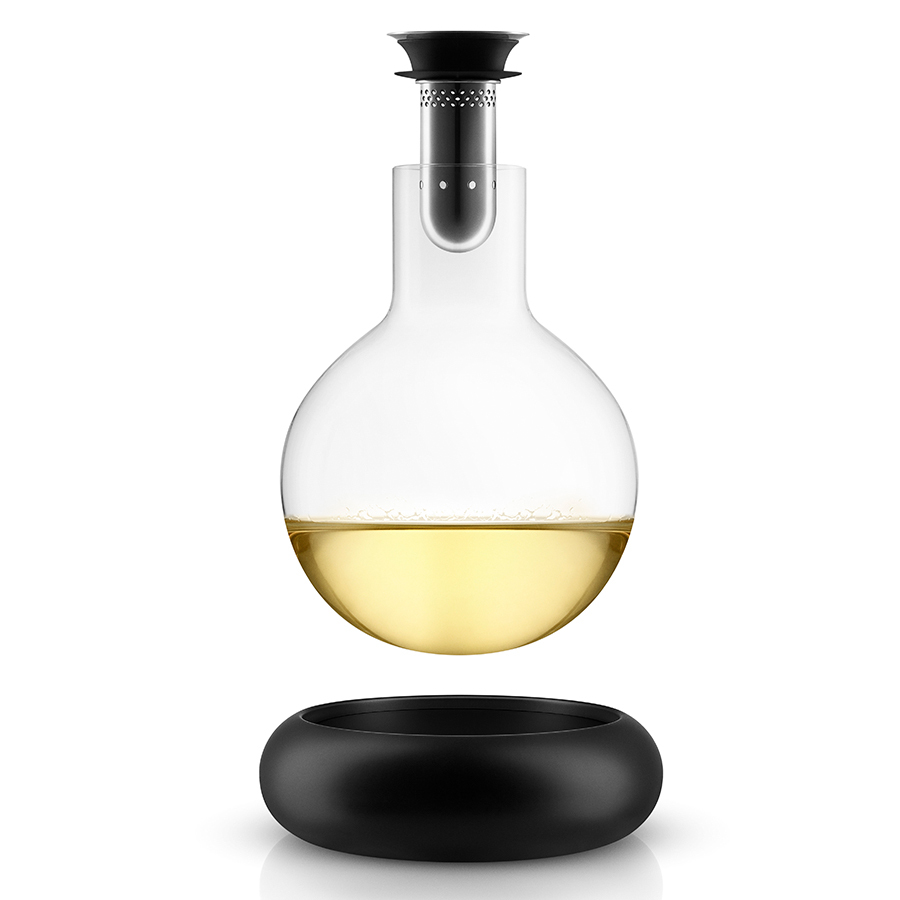 При наливании вино проходит через внутреннюю воронку со множеством дырочек, а затем стекает по стенкам, что позволяет ему максимально обогатиться кислородом. Этот процесс одновременно раскрывает вкус вина и делает его подачу ислючительно эффектной. Помимо этого, когда вы будете наливать вино в бокал, ни капли не прольется мимо – специальная форма горлышка не позволяет каплям падать с него, направляя их обратно в графин. Новая версия дополнена удобной подставкой. Подержите ее в морозильнике перед подачей вина: напиток будет мягко охлаждаться на протяжении целых 4 часов. Графин изготовлен из стекла ручной работы. Вмещает 0,75 л.