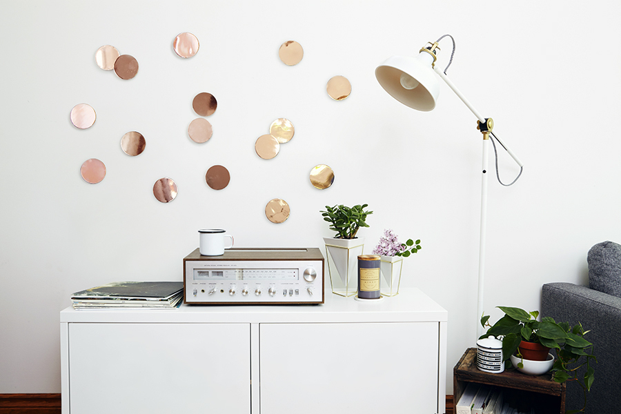 Добавьте стенам немного гламура и блеска! Комплект из 16 металлических полированных круглых конфетти с покрытием под медь. Идеальный декор для вечеринок и свадеб, а также прекрасный подарок для творческих натур. Конфетти крепятся к стене при помощи липкой ленты 3M Command (входит в комплект) на дистанционных ножках. Диаметр каждой конфетти 7 см Дизайнер Laura Carwardine