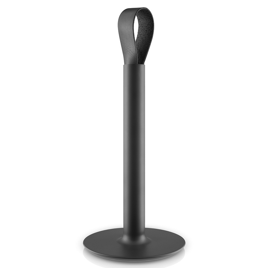 Для изготовления аксессуара мастера используют нержавеющую сталь, поверхность которой окрашивают в черный цвет. Держатель оснащен петлей из натуральной кожи, за которую его удобно переносить. Утяжеленное прорезиненное основание остаётся устойчивым даже в процессе отрывания бумаги, а также не оставляет царапин на столе. Держатель подходит для большинства форматов рулонов.