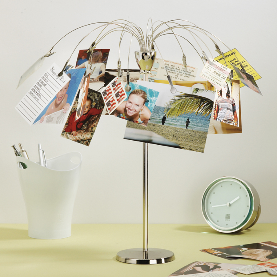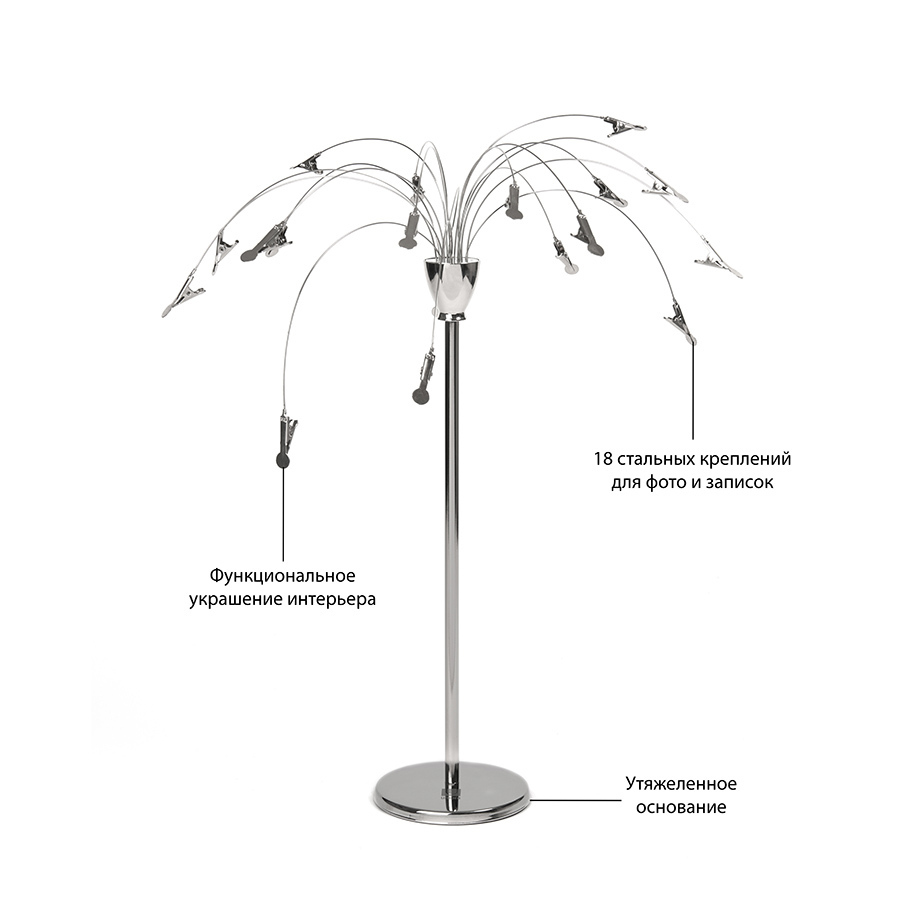 Настольный держатель для фотографий, записок, а также любых элементов декора имеет 18 "ответвлений" с клипсами-креплениями в виде цветочков. Отлично подходит для оформления комнаты, прихожей и даже офиса.