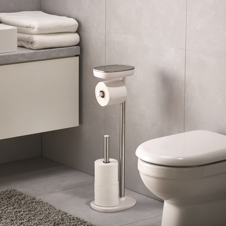 Держатель для туалетной бумаги со столиком отлично впишется в любую современную ванную комнату. Для создания новых аксессуаров дизайнеры Joseph Joseph руководствовались принципами рационального использования пространства, эргономичностью и удобством сортировки.
