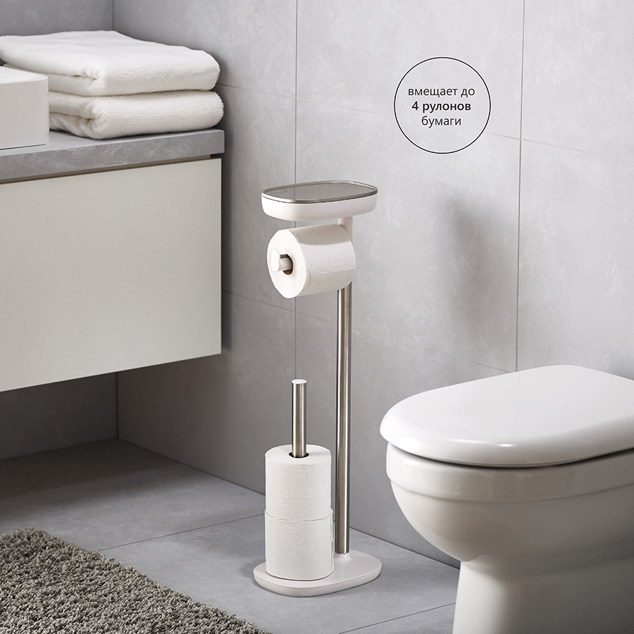 Подставка подходит для нескольких рулонов туалетной бумаги, на поднос можно положить книгу, украшения, гаджеты, скрытый отсек можно использовать для хранения средств гигиены.