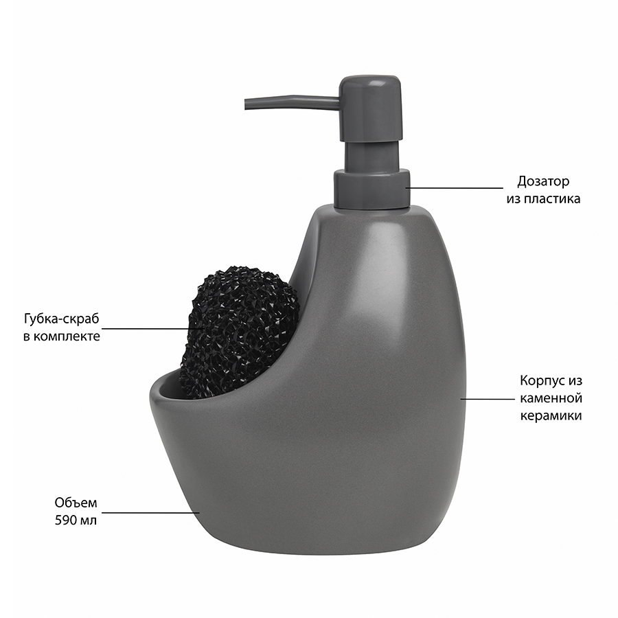 Керамический диспенсер с подставкой для губки поможет навести порядок у раковины и облегчит процесс мытья посуды. Дизайнер: Sativa Turner.