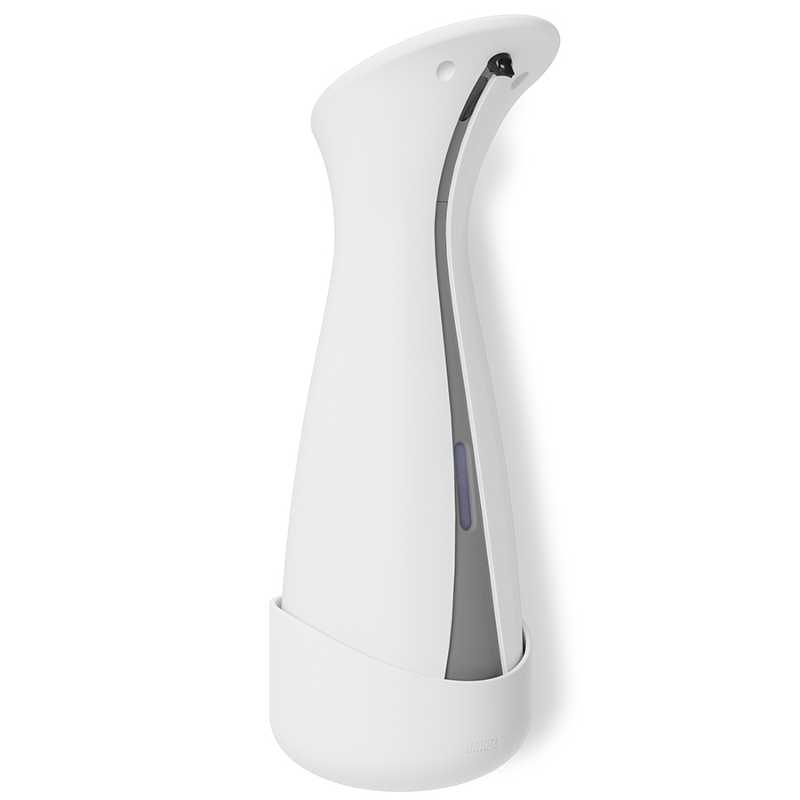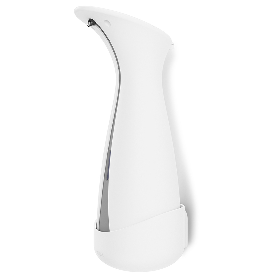 Сенсорный диспенсер Otto реагирует на движение: достаточно поднести к нему руки и вы получите порцию жидкого мыла. Противокапельный носик предотвращает засорение и образование подтеков. Небольшое окошко на передней панели показывает уровень мыла. Поддон крепится к стене на саморез. Объем: 255 мл. Для работы требуются 4 батарейки АAA (не входят в комплект).
