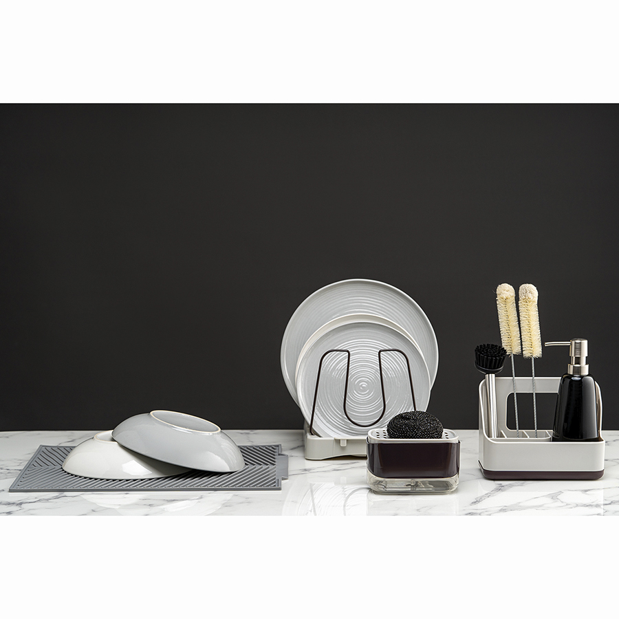 Диспенсер для жидкости для мытья посуды Nori имеет оригинальный дизайн в виде мыльницы и компактные размеры, благодаря чему занимает минимум места на раковине. Использование данного устройства позволяет навести порядок на кухне, убрав со столешницы бутылки с моющими средствами, а также исключив появление застойных мыльных разводов на прилегающих поверхностях. Конструкция с эргономичным дизайном обеспечивает удобное хранение губки в приподнятом состоянии для быстрого высыхания. Оставшаяся вода стекает в специальный поддон. Диспенсер простой в эксплуатации. Для получения мыльной пены достаточно слегка нажать на основание. Изделие легко разбирается для тщательной очистки.