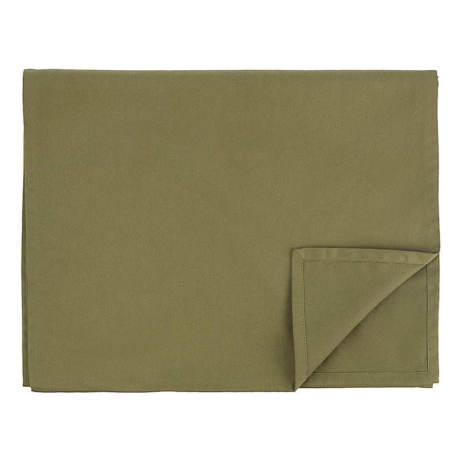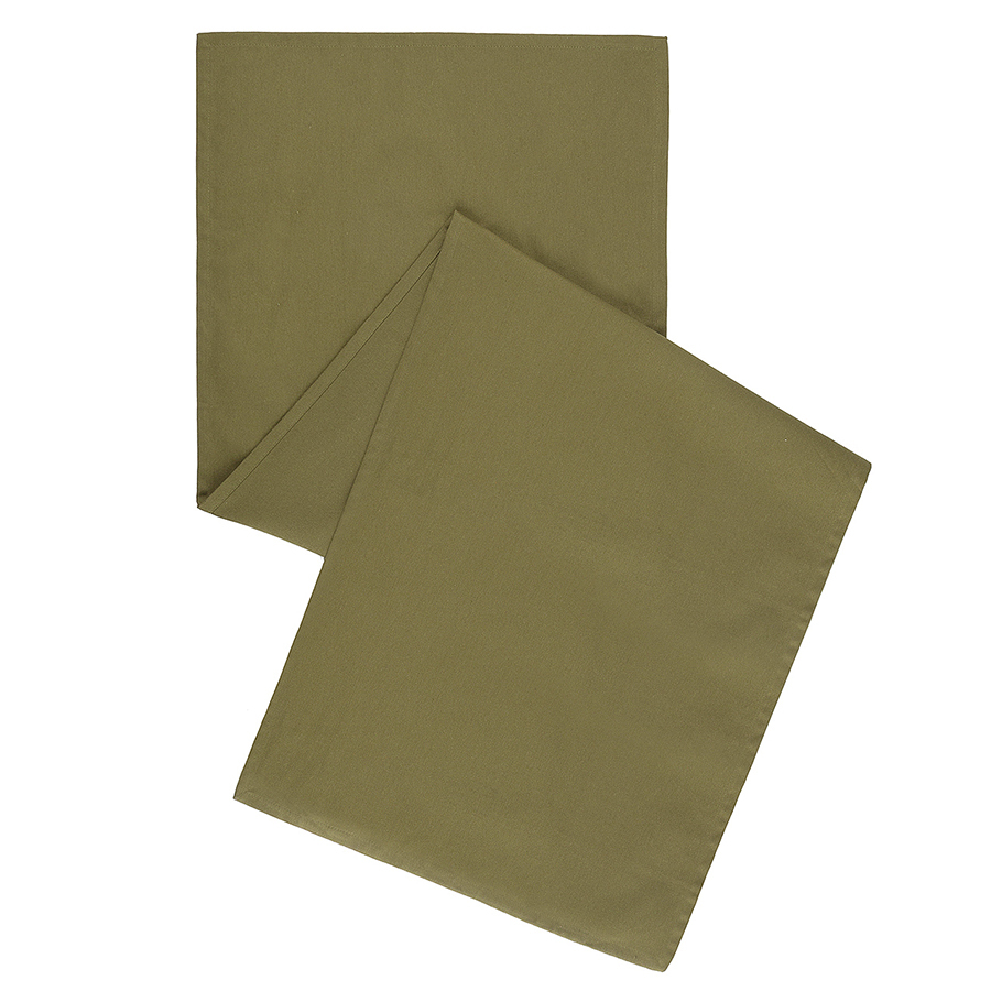 Дорожка на стол из хлопка оливкового цвета из коллекции Essential внесет разнообразие в повседневную и праздничную сервировку. Изделие будет хорошо сочетаться с подходящим по цветовой гамме однотонным и принтованным столовым текстилем и органично впишется в любой интерьер. Модель выполнена из плотного хлопка - прочного материала, который хорошо впитывает влагу и не деформируется после множества стирок.