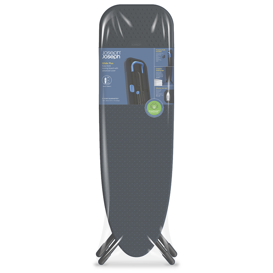 Достоинство инновационного чехла – многослойное покрытие с технологией DripShield ™, созданное для работы с большими объемами глажки и для использования утюгов с парогенераторами. Чехол служит долго, но при необходимости заменяется. Конструкция регулируется по высоте: от 84 см до 99 см. Чехол оборудован термостойкой силиконовой подставкой для утюга. Он снимается и удобно складывается для компактного хранения. Есть крючок для подвешивания доски.