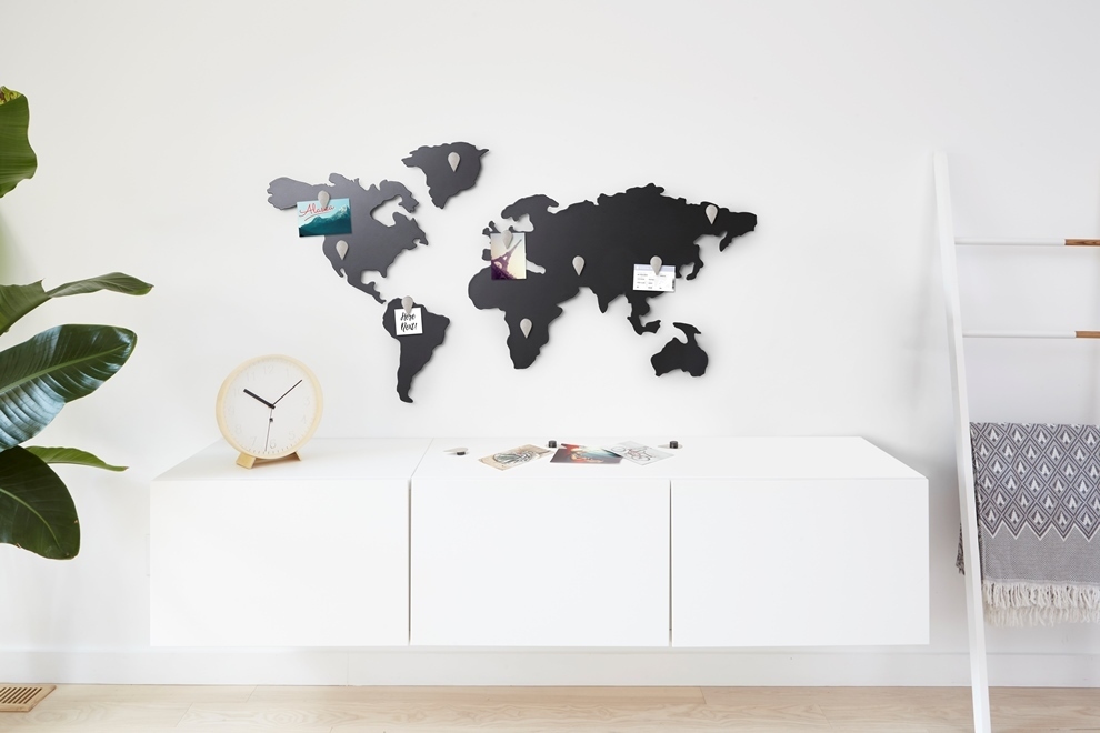 Необычная магнитная доска в виде карты мира. Объемный вид делает её также отличным настенным декором для офиса, детской или кабинета. На доске отлично поместятся все to-do списки или мудборд для организации важных мероприятий. А пока вы работаете, можете параллельно выбирать место для следующего отпуска или новые рынки для сотрудничества. В комплект входит 12 магнитов в виде капелек-указателей на электронных картах. Отличный вариант подарка. Дизайнер Sung Wook Park и Jenny Suh