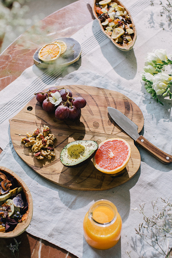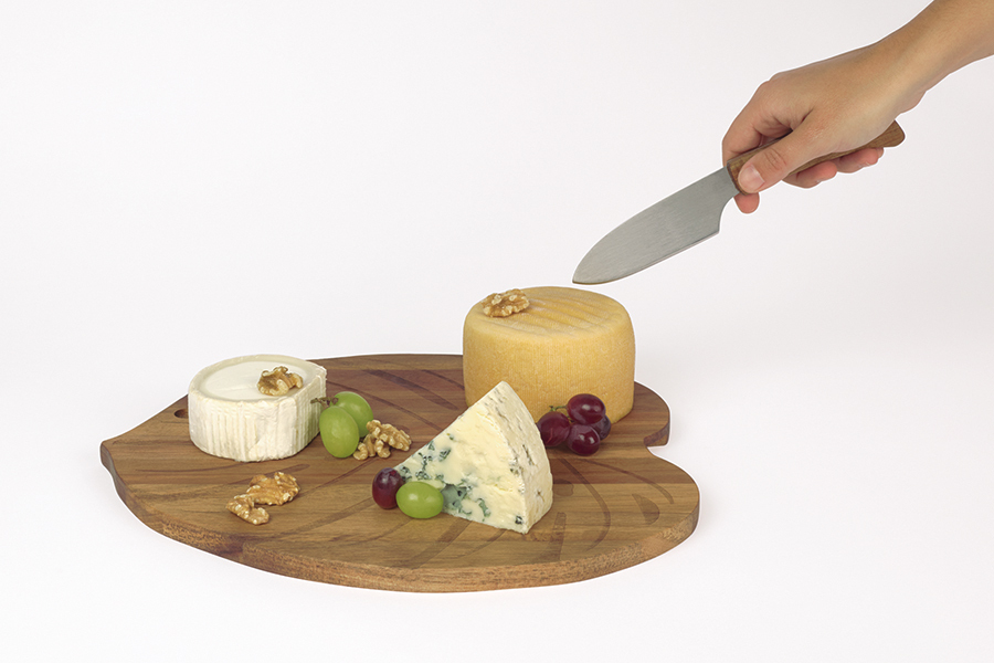 Сервировочная доска Monstera идеальна для подачи сыров и закусок. Внутри большого листа из дерева акации находится нож с лезвием из нержавеющей стали, что очень удобно, когда нужно нарезать дополнительную порцию, не выходя на кухню. Стильно, оригинально, удобно, экологично!