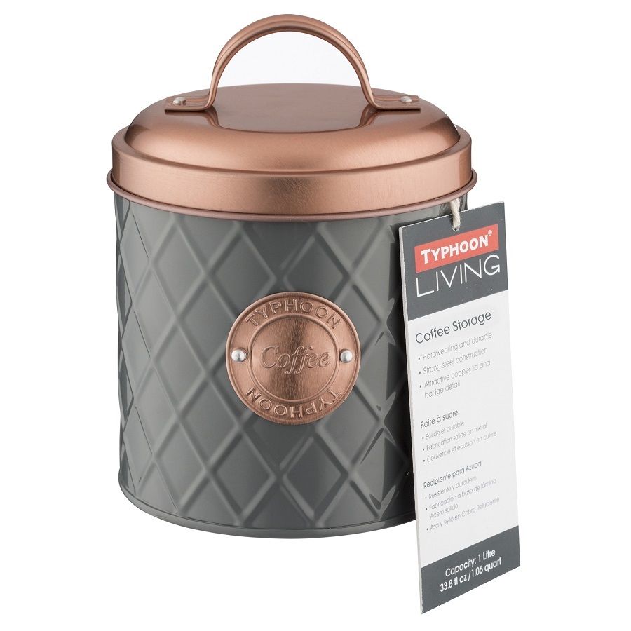 Емкость для хранения кофе Henrik изготовлена из стали с порошковым покрытием – материала, не подверженного деформации. Забавная золотистая крышечка герметично закрывает емкость, не позволяя посторонним запахам попадать внутрь.